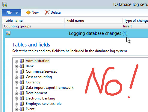 - And now, the wizard will delete ALL records in the Setup table, and reconstruct those that are relevant to the database log Setup. Which records with logType Insert Alert etc. are not.